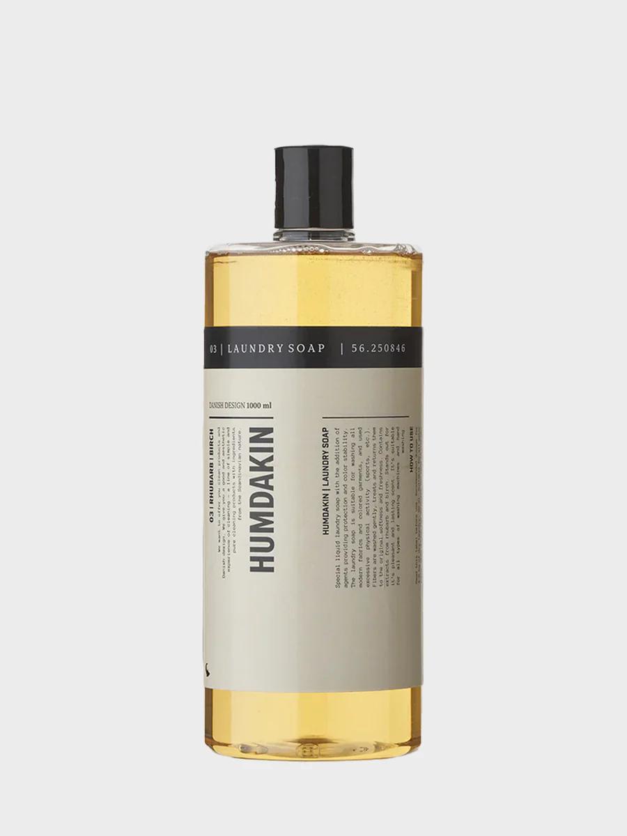 Vaskesåpen inneholder naturlige ekstrakter av rabarbra og bjørk, som har omsorgsfulle og beroligende egenskaper. Vaskesåpen har lagt til agenter som gir beskyttelse og fargestabilitet for klærne dine.