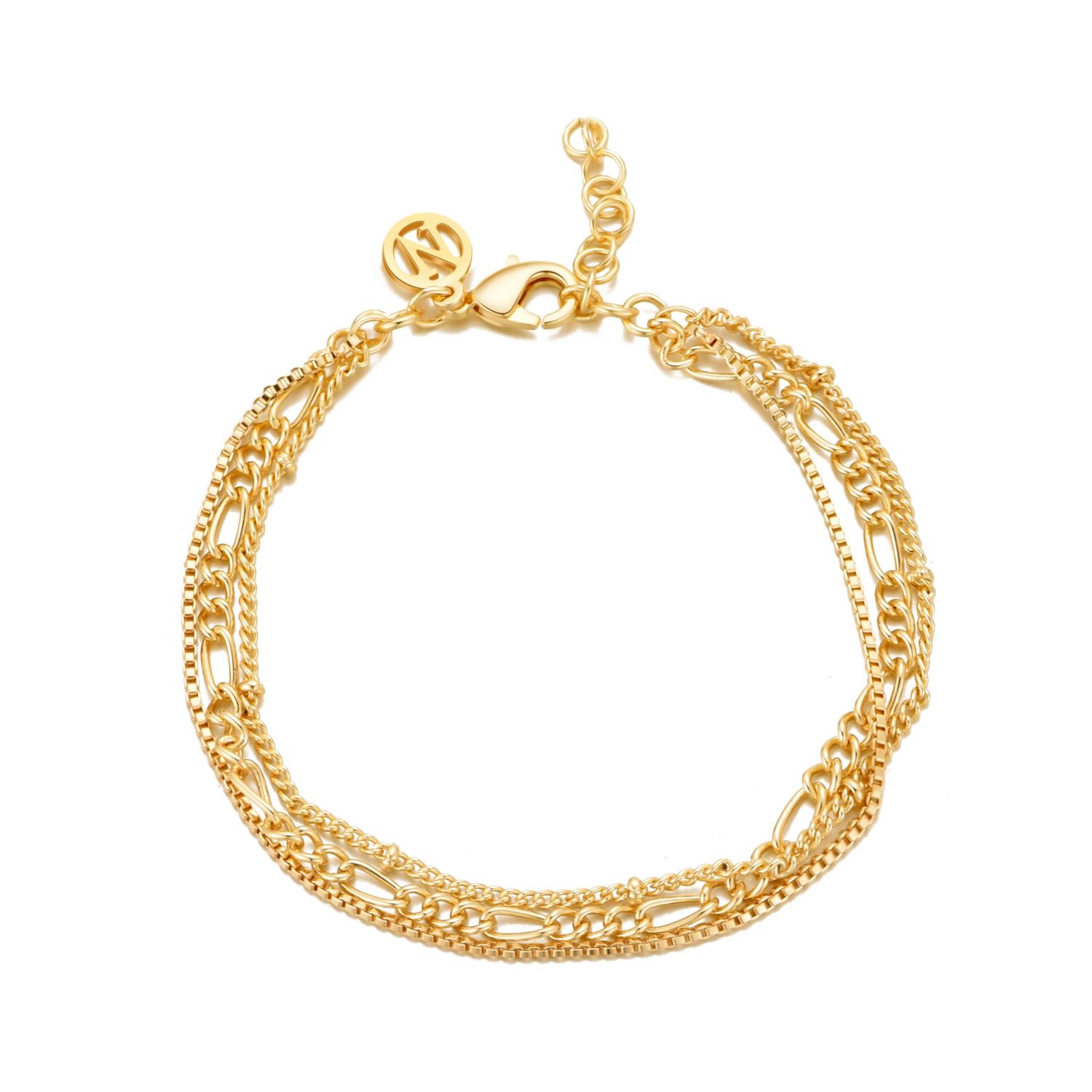 Armbåndet er laget med en kobberbase som er belagt med 14 karat gull.