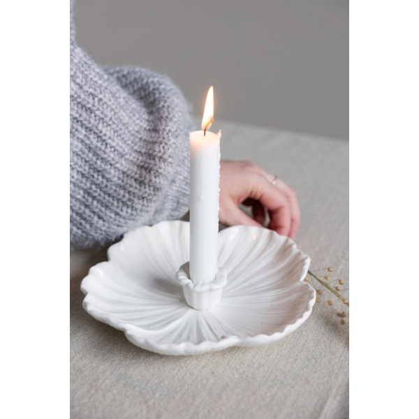 Keramisk lysestake i form av en blomst. Dette vakre kunstverket er både dekorativt og funksjonelt. Plasser lysestaken midt på spisebordet for å skape en koselig følelse, eller plasser den ved siden av sengen og bruk den også som oppbevaring for smykker.