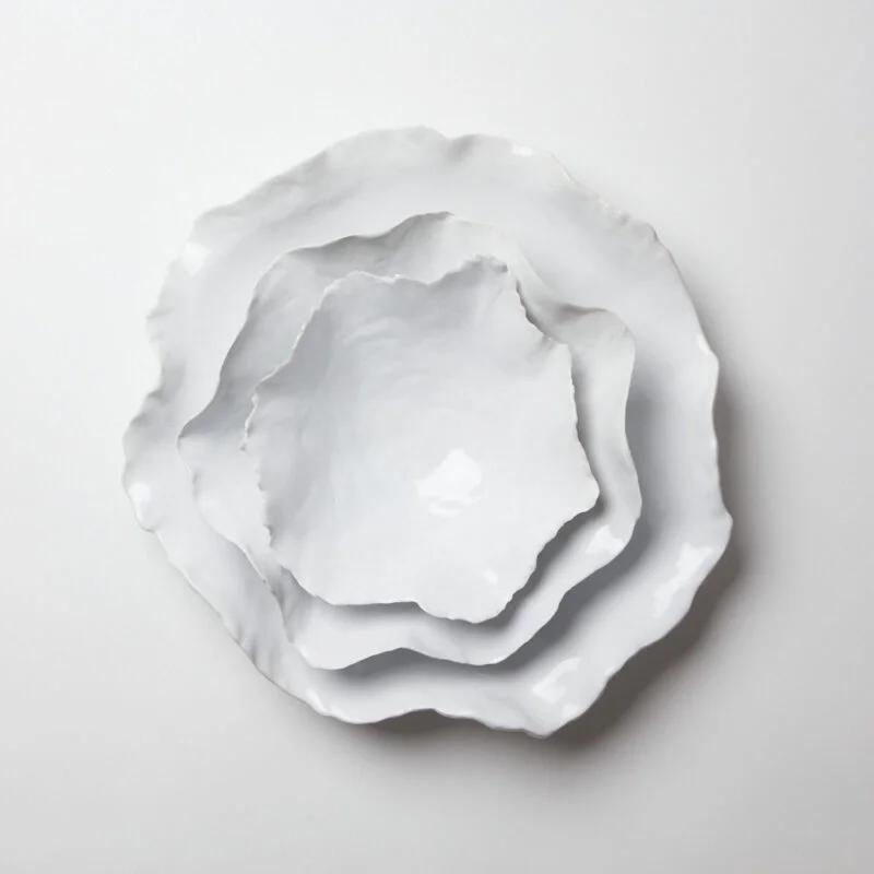 Dette fatet er unikt og håndlaget med et rått, men samtidig elegant-utseende, noen synes de ligner et vakkert østersskall. Å servere en deilig salat, pasta eller suppe vil garantert gi deg kommentarer til de vakre tallerkenene.