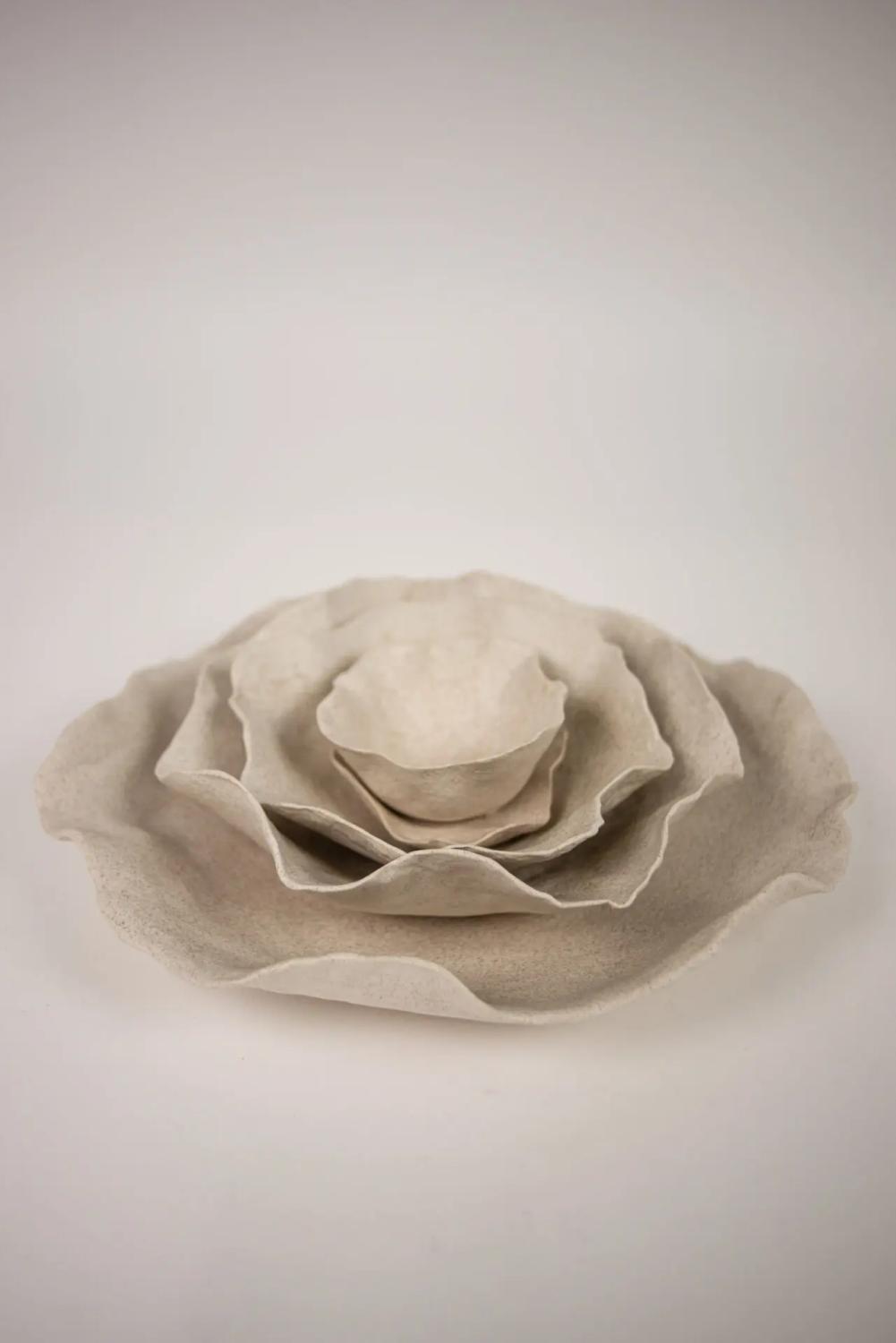 Claire-fatene er unike og håndlagde, med et rått men elegant uttrykk – noen synes de ligner vakre østersskjell. Å dekke bordet med dem gir en annerledes og fantasifull borddekking.
