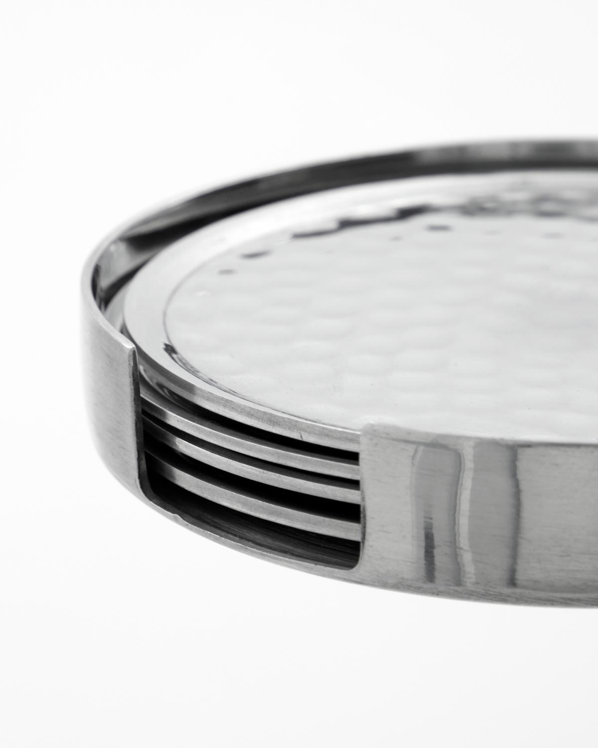 Disse runde bordbrikkene i aluminium med sølvfinish har et håndhamret mønster som gir en raffinert og personlig detalj til enhver borddekking.