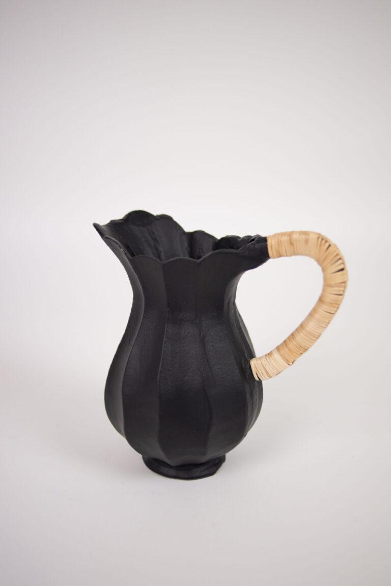 Vakker dekorativ krukke i aluminium, pyntet med et dekket håndtak. Egnet for tørkede blomster.