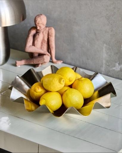Perfekt til salongbord eller som midtpunkt, den metalliske overflaten reflekterer stearinlys og fanger blikket. Gjør et statement i stuen, kjøkkenet eller gangen mens du viser frem ornamenter, eller bare lar bollen skinne av seg selv.
