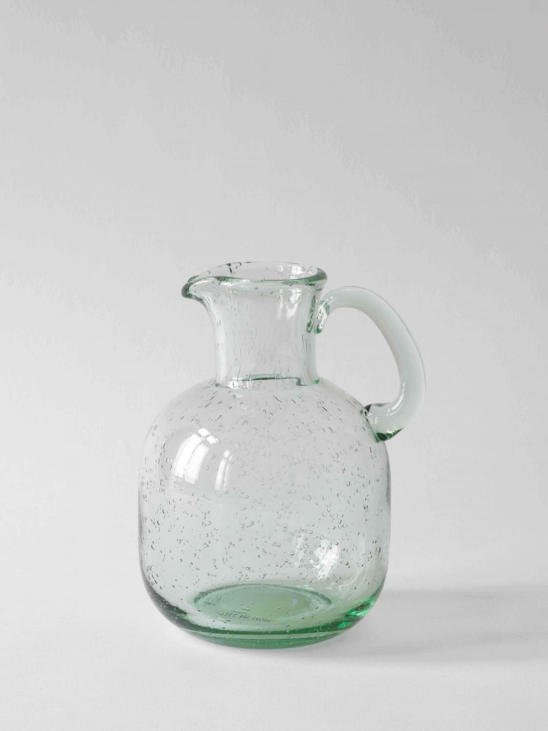 Dekk bordet med vår vakre glasskaraffel Garonne som er laget for hånd. Karaffelen er munnblåst, noe som gjør hver karaffel unik i farge, form og følelse. Farge og form kan derfor endre seg fra karaffel til karaffel. Glasskaraffelen er allsidig og kan brukes som dekorasjon på bordet, som vase eller til servering av drikke. Garonne-karaffelen er laget av lysegrønt glass og finnes i to størrelser. I Garonne-serien finner du også en allsidig vase i samme vakre farge.