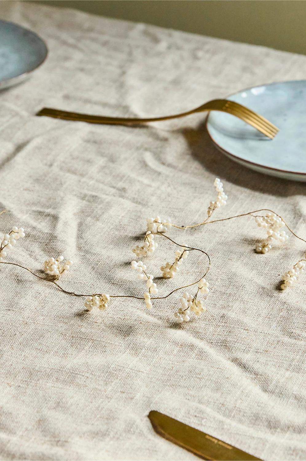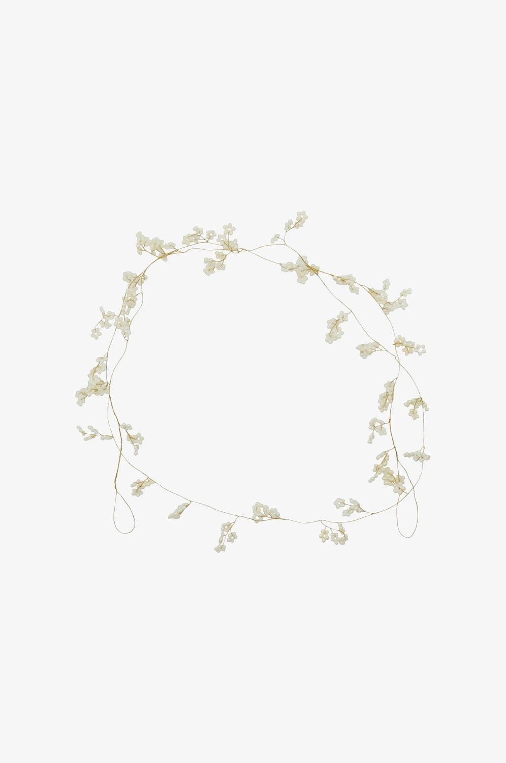Vakker girlander med en gyllen metalltråd og klyngede off-white elementer.