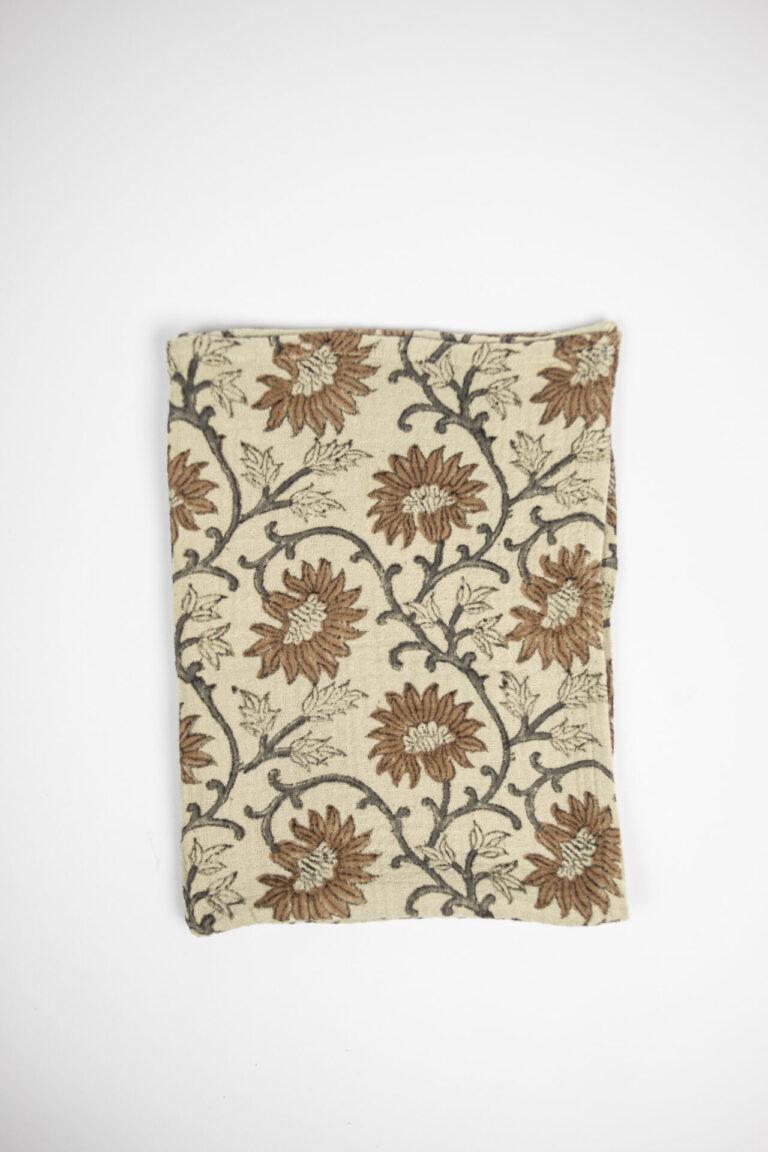 Håndkle i 100% bomull, laget med håndlaget blokktrykkteknologi