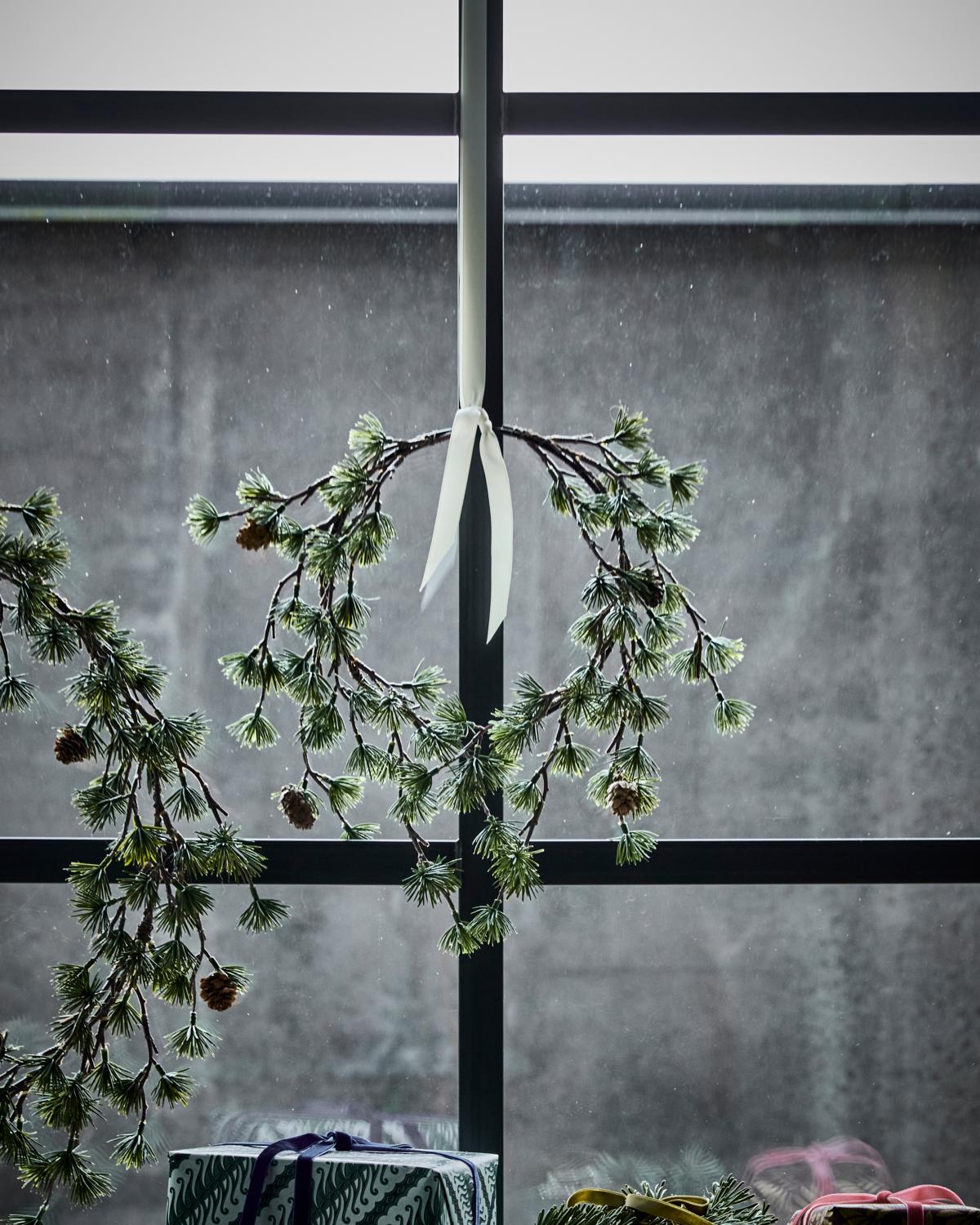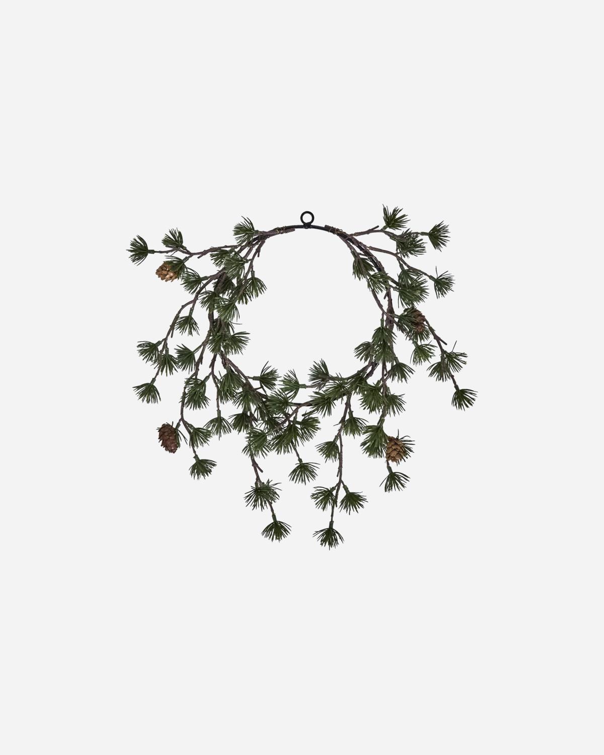 Forvandle julepynten din med denne utsøkte kransen med naturtro furu og sjarmerende kongler. Heng den på inngangsdøren eller vis den frem i et vindu for å gi hjemmet ditt festlig eleganse. Gjør den personlig med julekuler eller pynt for ekstra stil.