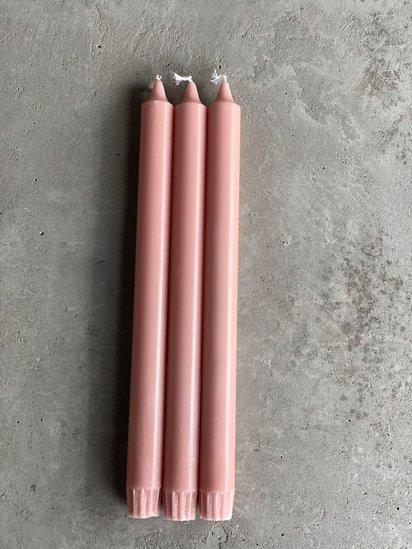 Kronlys 100% stearin Mål: 2,2 x 28 cm Farge: Lys Rosa Brennetid ca. 10 timer