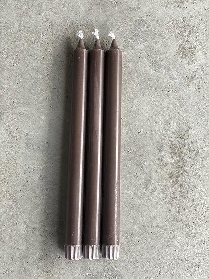 Kronlys 100% stearin Mål: 2,2 x 28 cm Farge: Mørk Lin Brennetid ca. 10 timer