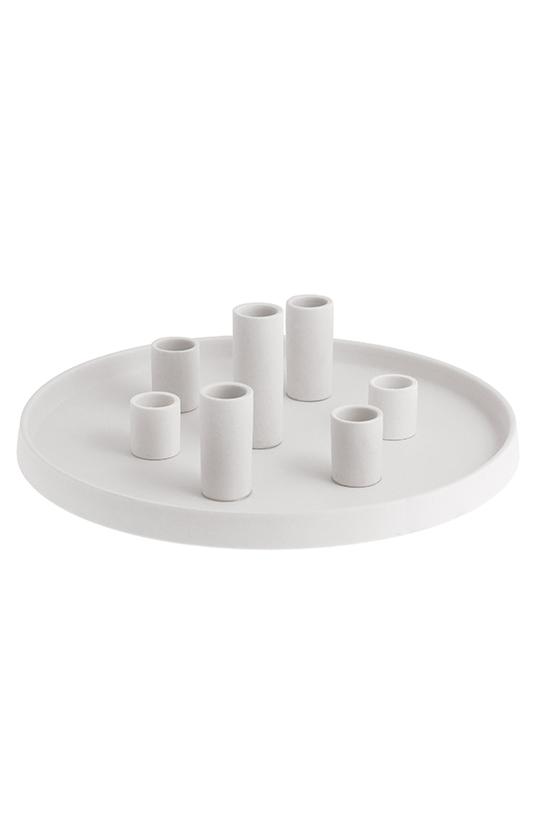 Lysestake i matt keramikk. Denne praktfulle lysestaken holder syv lys og gjør et fantastisk smykke uansett hvor du velger å plassere det. Med forskjellige høydeforskjeller i lysestakene, skapes en vakker glød på forskjellige nivåer.