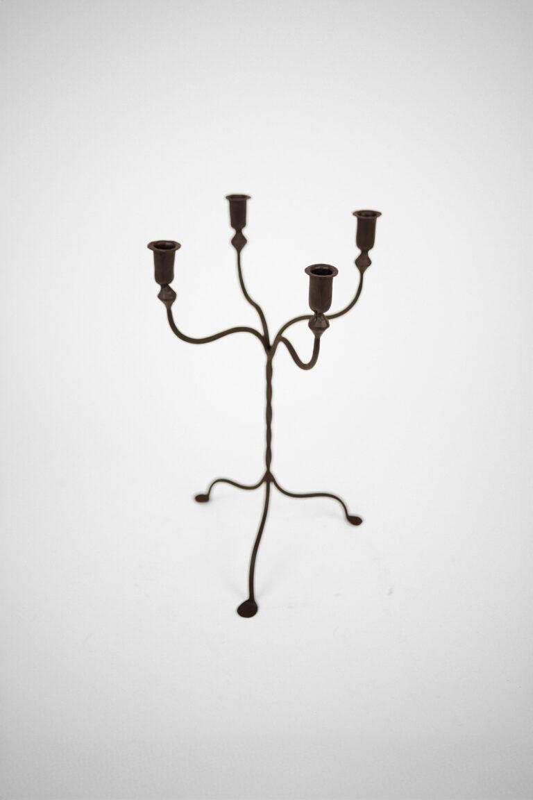Sjarmerende buet jernlysestake med fire armer. Den lekne silhuetten og rustikke finishen gir et elegant uttrykk med en vri.