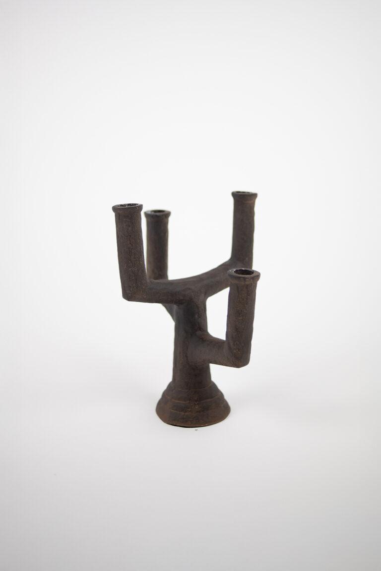 Firearmet lysestake i rustikk design, inspirert av wabi-sabi – hvor det asymmetriske og naturlige kan finne sted.