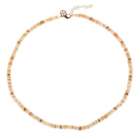 42 cm langt halskjede laget av ekte skall. Halskjedet har 5 cm justering ved låsen.