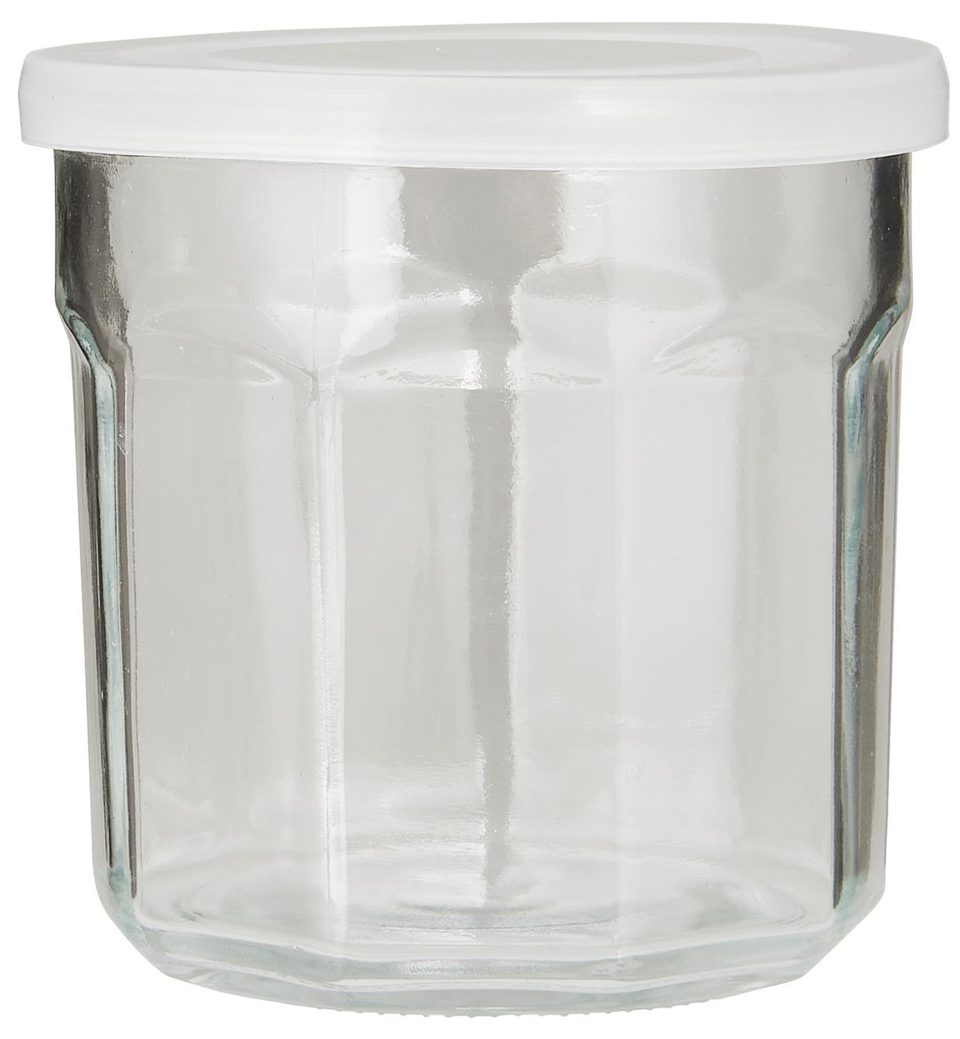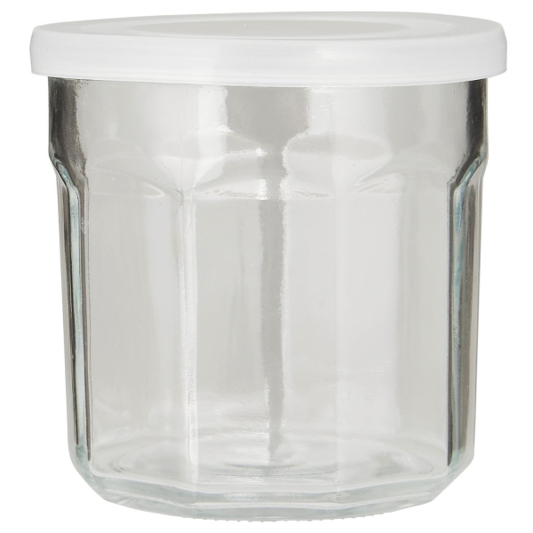 Praktisk og stilig syltetøykrukke med gjennomsiktig lokk og en kapasitet på 400 ml. Perfekt til oppbevaring av hjemmelaget syltetøy, syltetøy eller små porsjoner andre delikatesser. Et funksjonelt og elegant valg for kjøkkenet ditt.