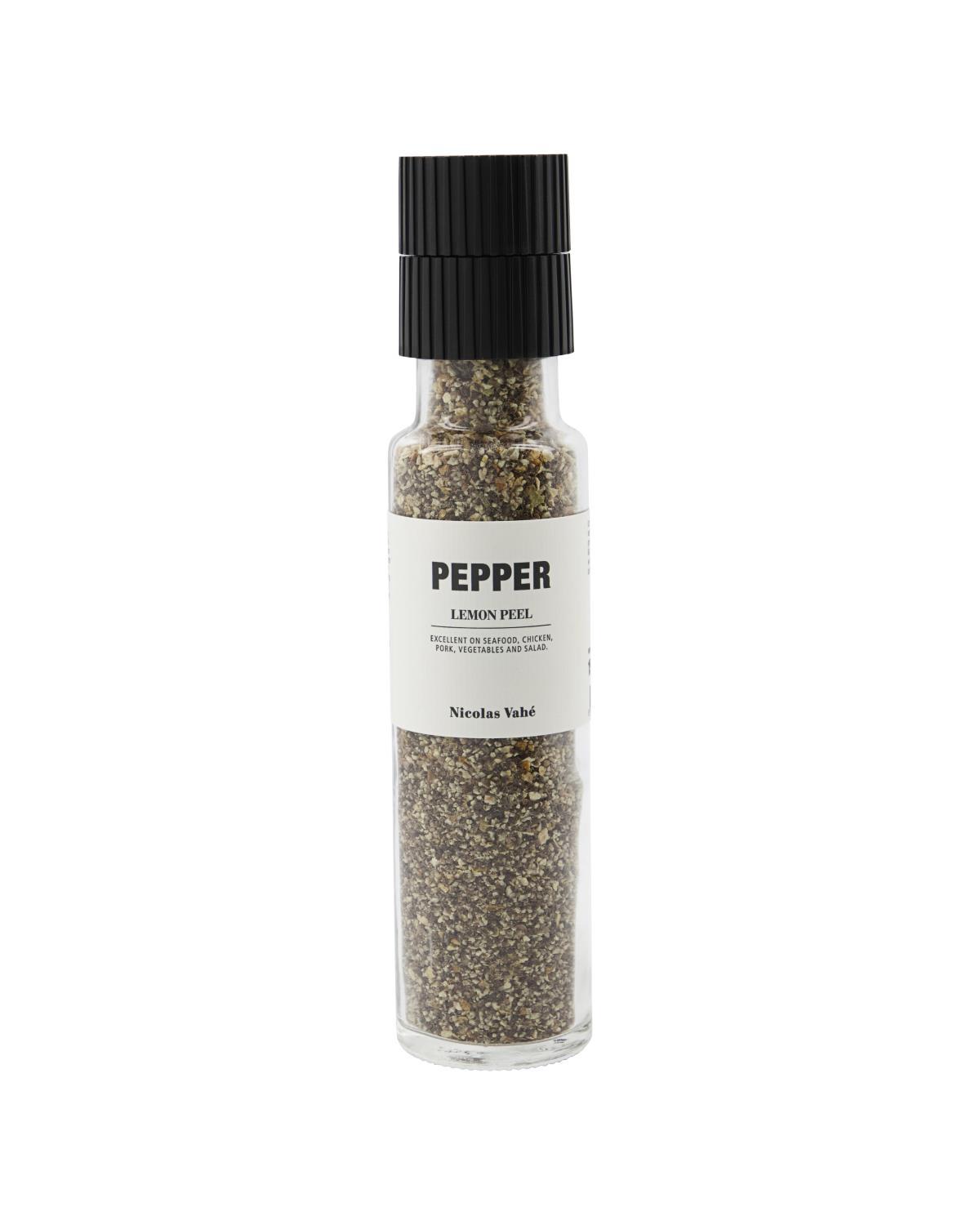 Denne spennende sorte pepperblandingen med sitron passer perfekt til retter som inneholder sjømat. Nyt den sorte pepperens særegne smak med en vri fra Nicolas Vahé i form av en balansert smak av sitron. Smaken er ideell til kylling, svinekjøtt og ulike hjemmelagde salater som bare trenger litt ekstra smak. Svart pepper med sitron er også et utrolig dekorativt produkt, og det er derfor også et fint element å vise frem på kjøkkenet. Det er også en god vertinnegave. Hver kvern leveres med en keramisk kvern som gir deg ekstra finmalte krydder. Dette frigjør oljene for mer aroma og smak i rettene.