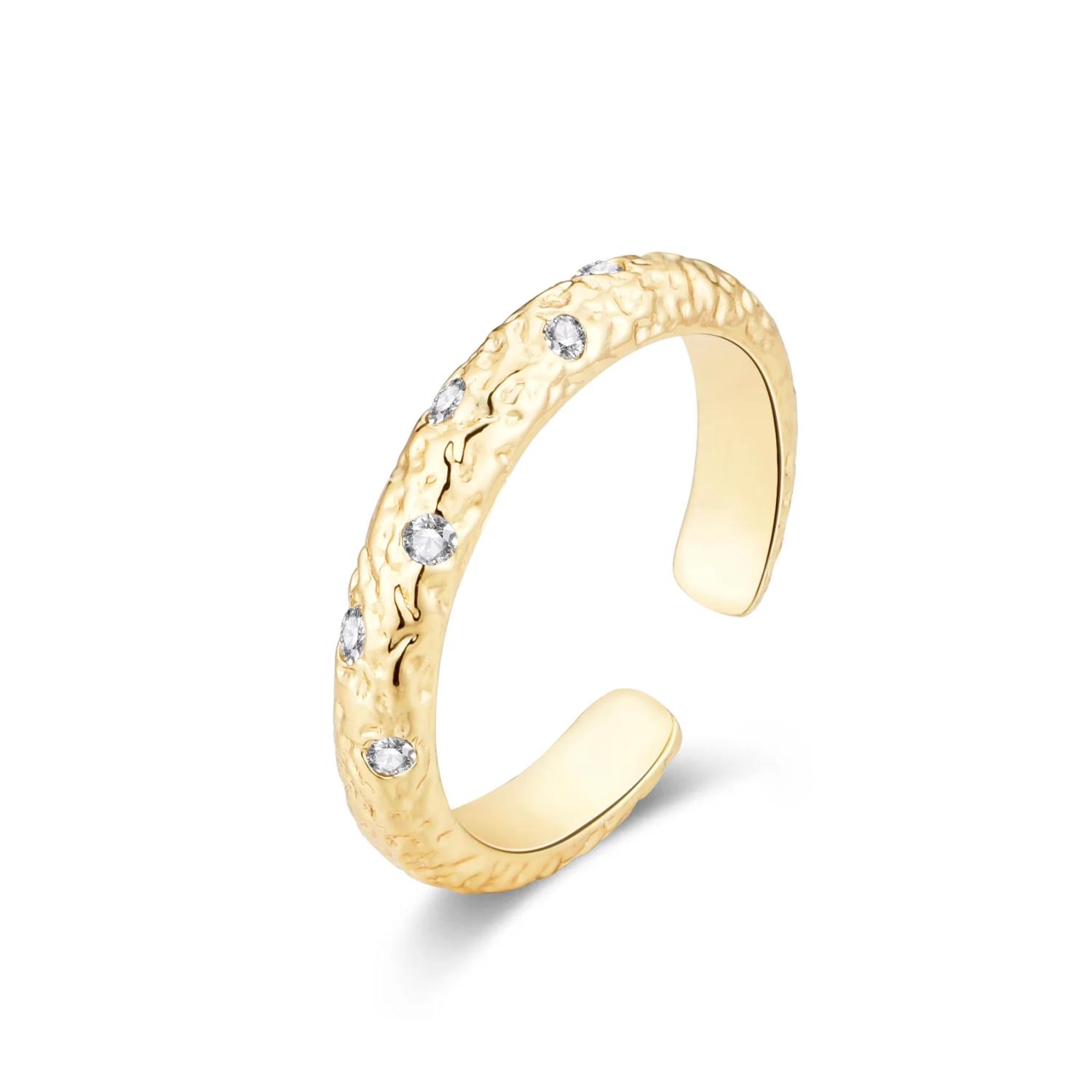 Ringen er laget med en kobberbase som er belagt med 14 karat gull.