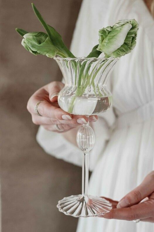Vakker håndlaget lykt / vase på fot | Varme- og vannbestandig