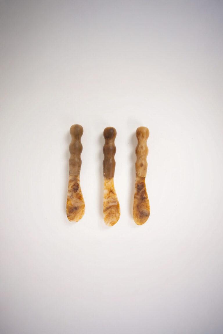 På grunn av harpiksens natur skjer det fargeskift, noe som gjør hvert produkt unikt.