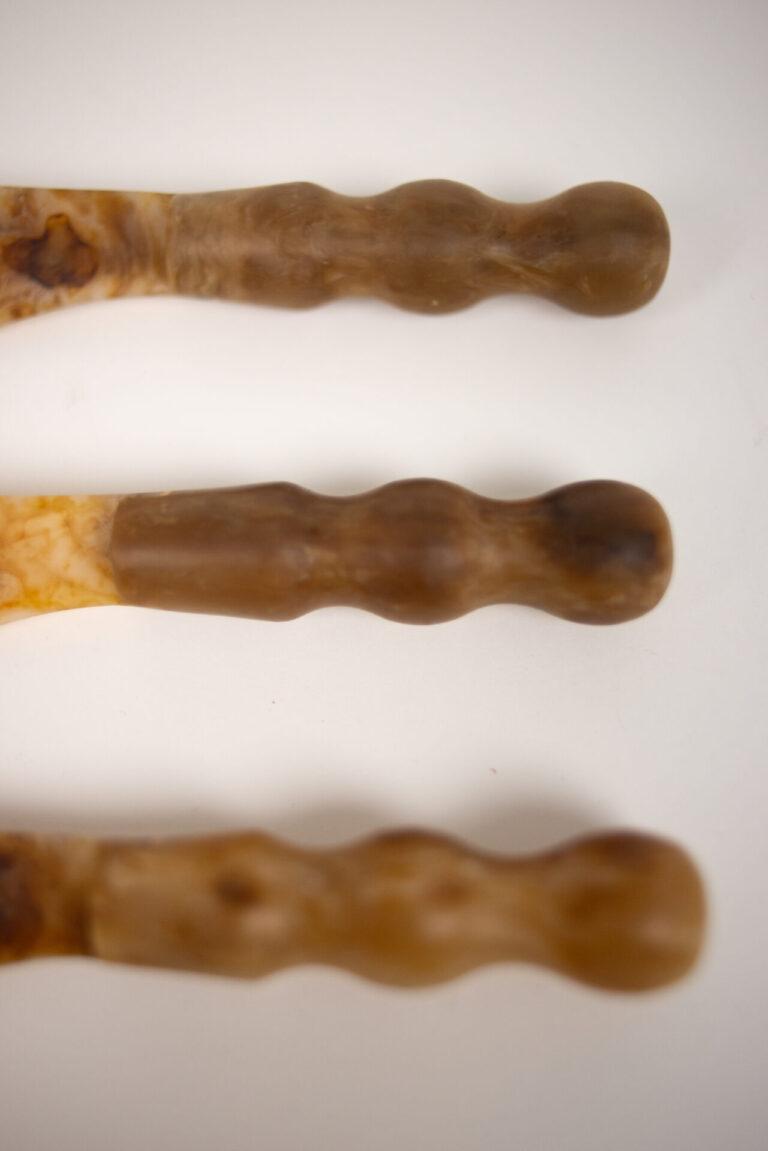 På grunn av harpiksens natur skjer det fargeskift, noe som gjør hvert produkt unikt.