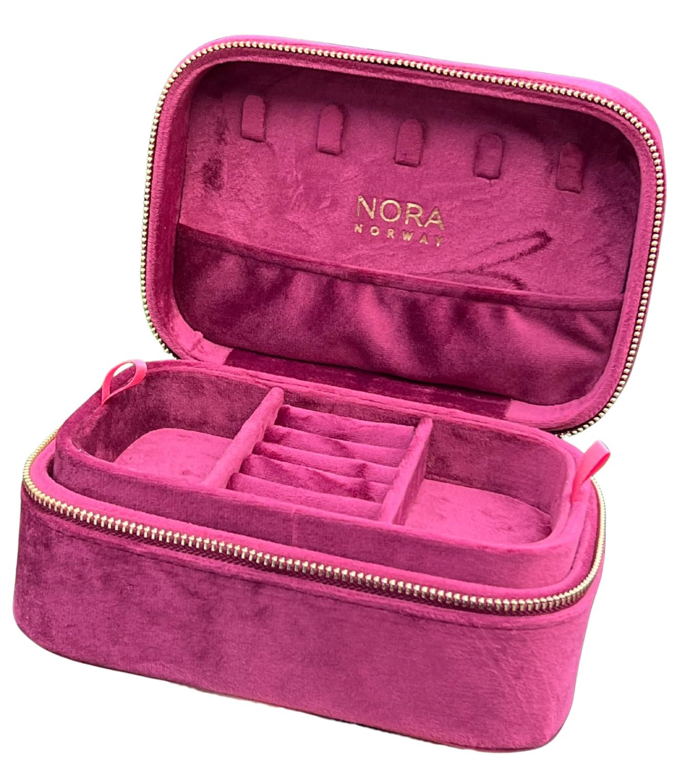 Praktisk smykkeskrin med smarte inndelinger og en myk innside, som gir et luksuriøst preg.