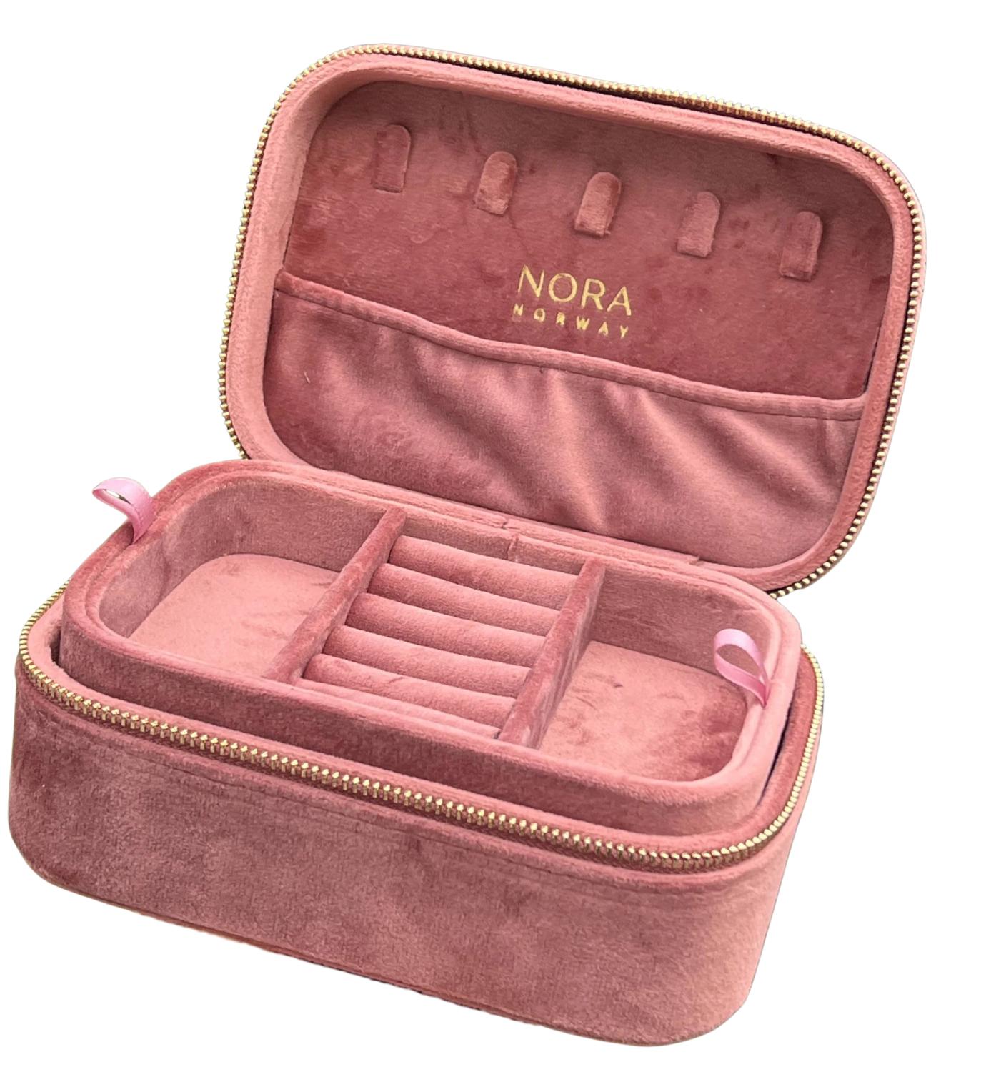 Praktisk smykkeskrin med smarte inndelinger og en myk innside, som gir et luksuriøst preg.