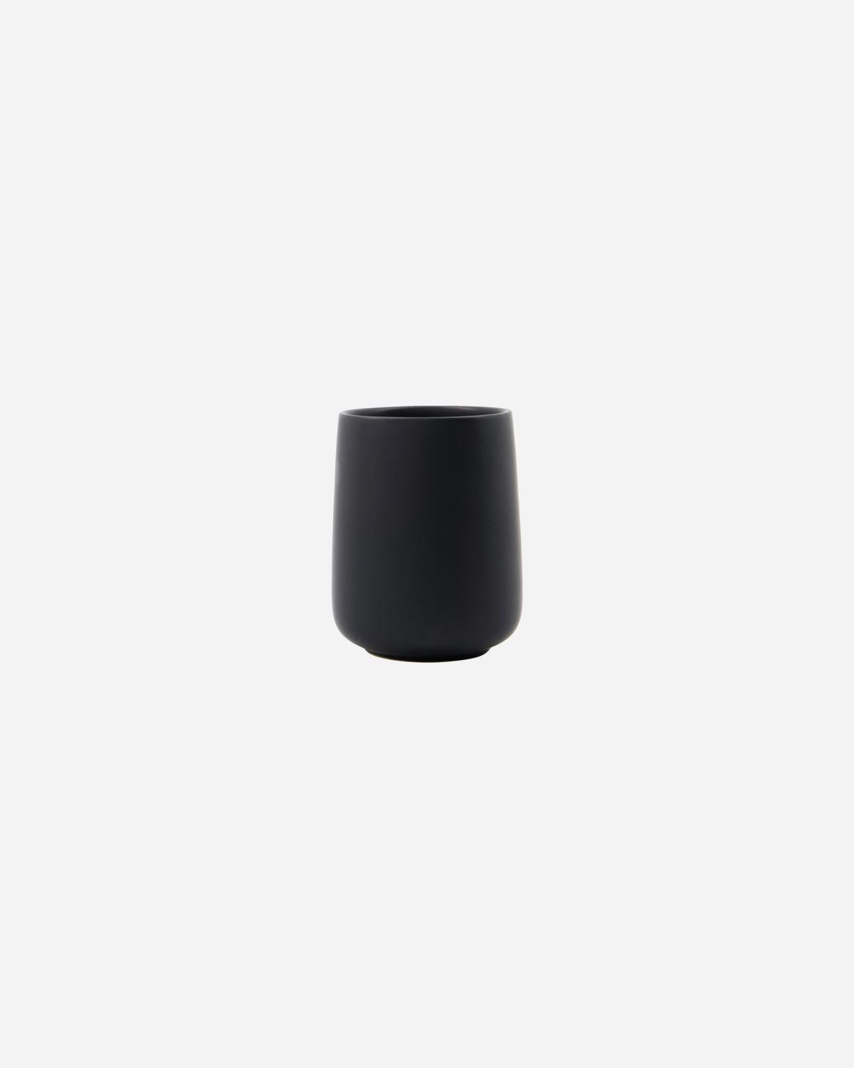 Dette keramiske vannglasset fra House Doctor gir badet ditt en rask update helt enkelt. Den svarte fargen og den elegante designen gir et tidløst, minimalistisk preg på badet ditt. Bruk den som holder for tannbørste og tannkrem. Eller skaff to og bruk den andre til sminke. En enkel og effektiv måte å skape en rolig, sammenhengende stemning på.
