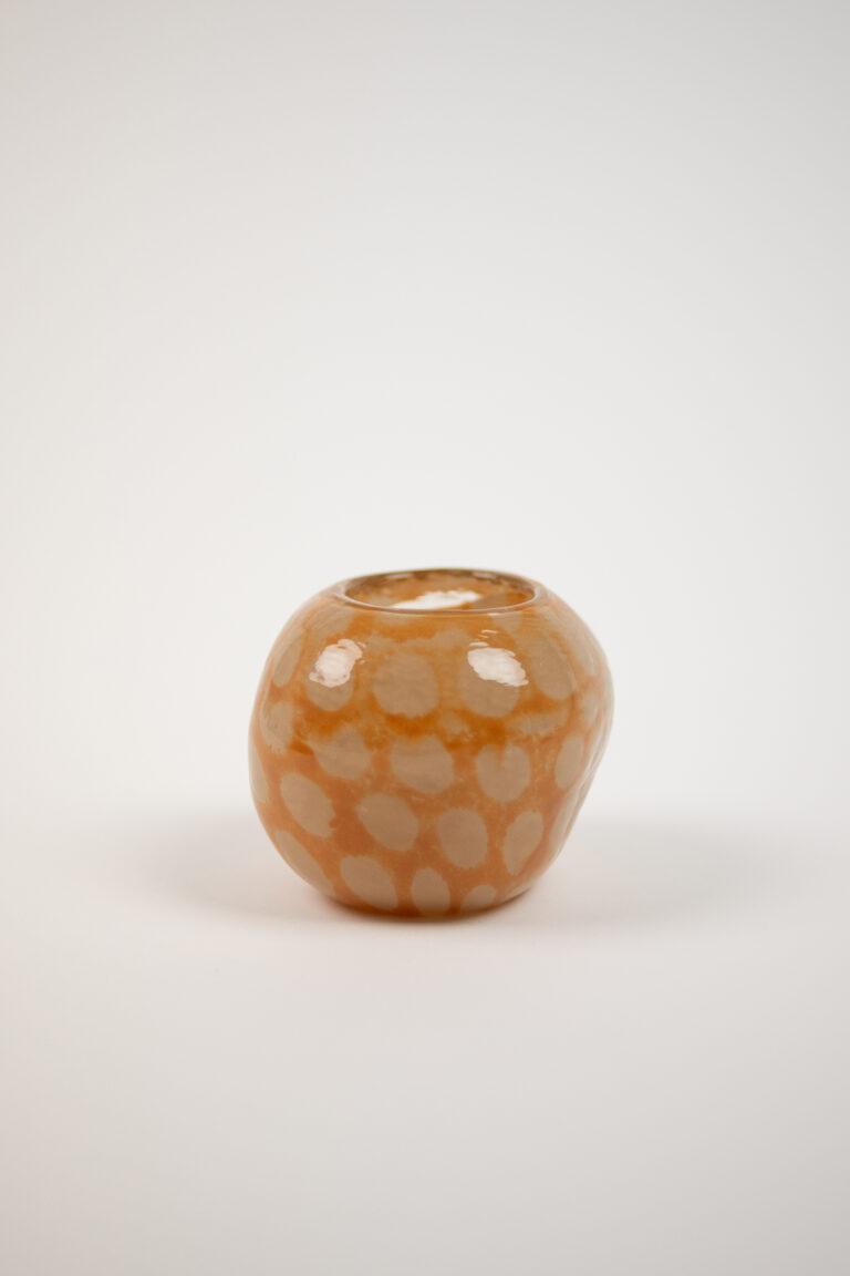 Avrundet lysestake med sjarmerende prikkete design. Passer best i kombinasjon med 4-timers telys.