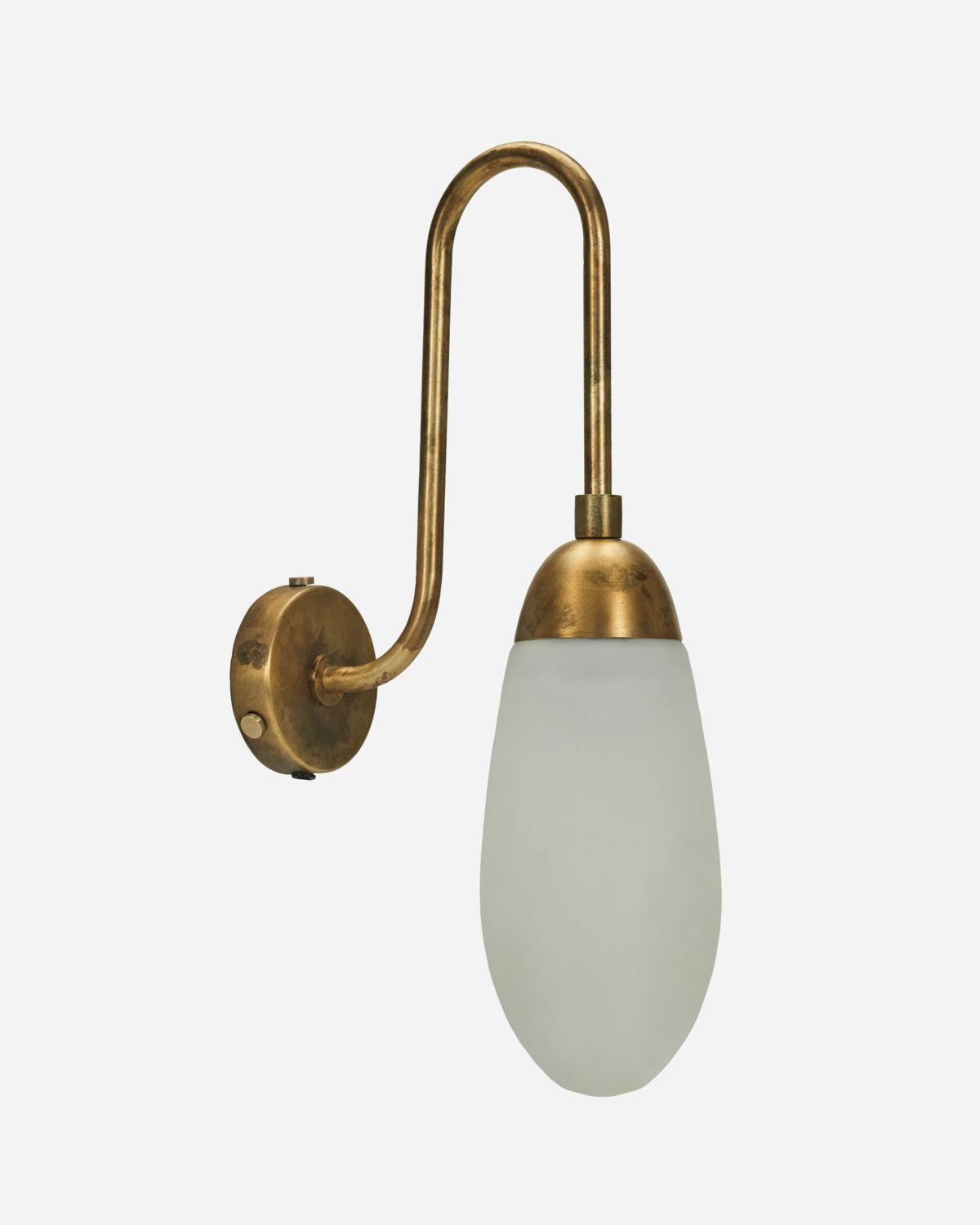Forbedre hjemmet ditt med denne vegglampen i antikk messing, som har en dråpeformet opalglasskjerm. Den gir et mykt og innbydende lys som tilfører eleganse og personlig stil til ethvert rom.